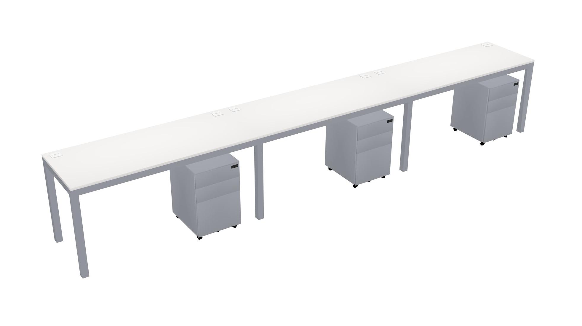 White Rectangular Office Desk With Metal Mobile Drawers For 3 Persons