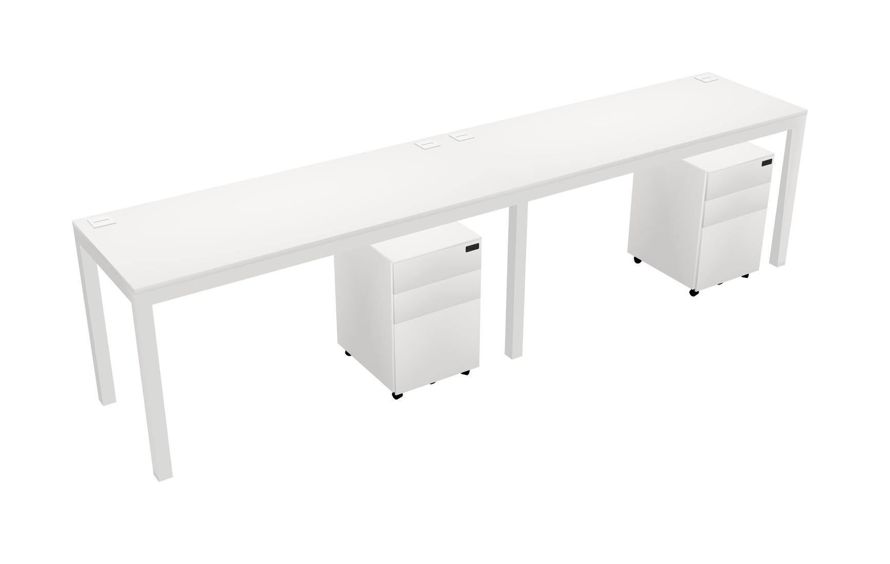 White Rectangular Office Desk With Metal Mobile Drawers For 2 Persons