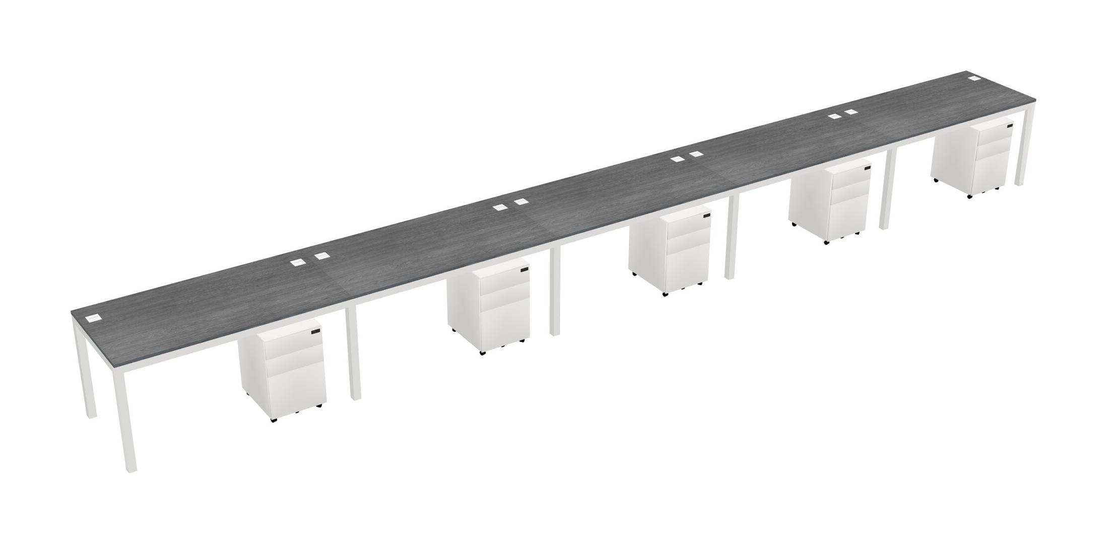 Grey Rectangular Office Desk With Metal Mobile Drawers For 5 Persons