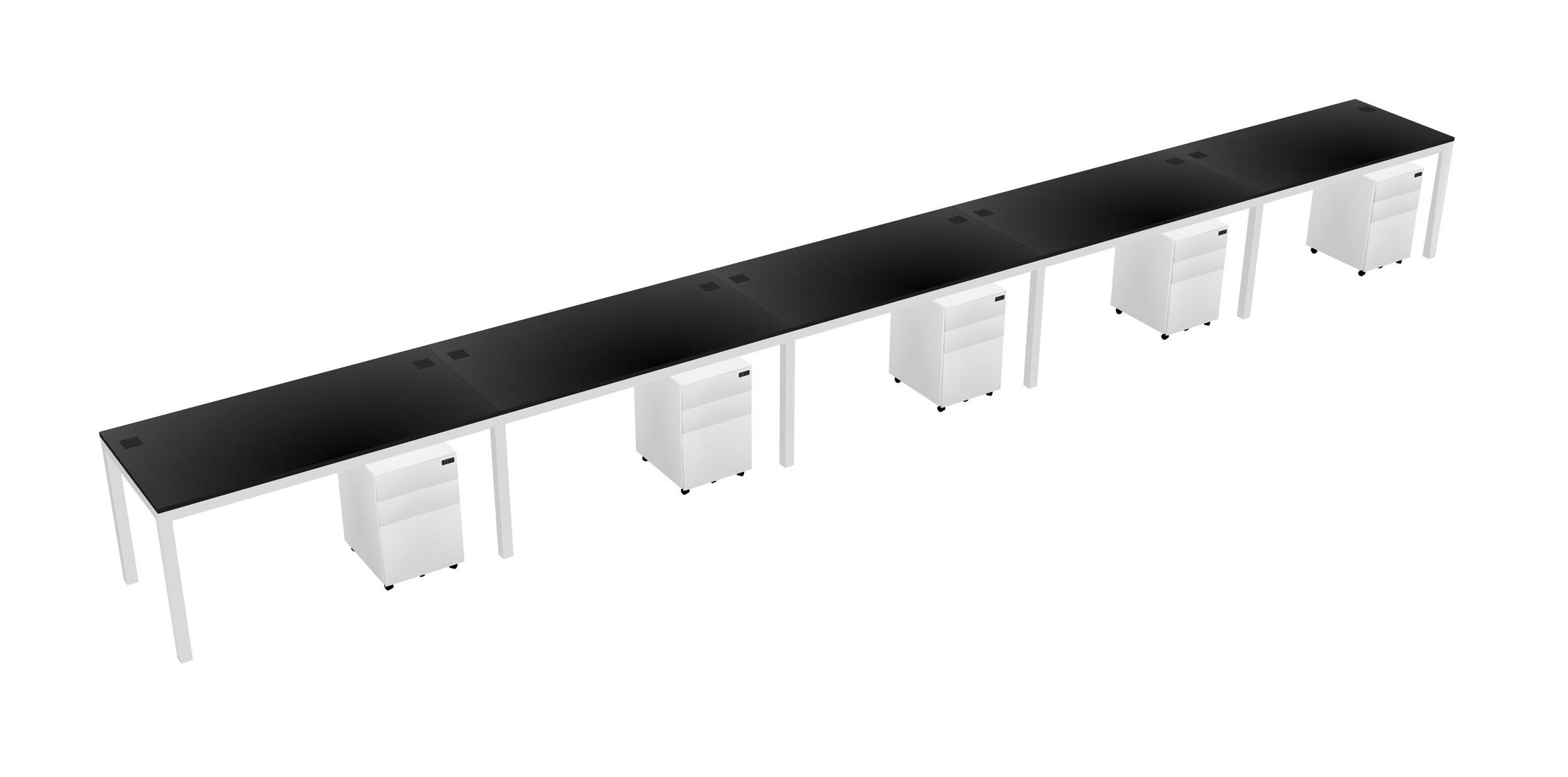 Black Rectangular Office Desk With Metal Mobile Drawers For 5 Persons