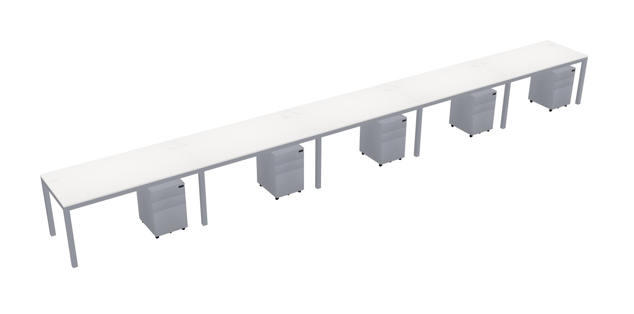 White Rectangular Office Desk With Metal Mobile Drawers For 5 Persons