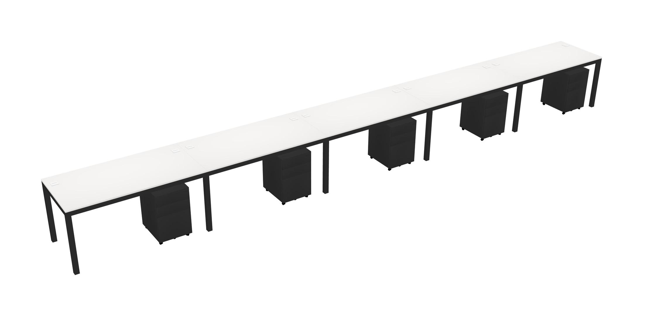 White Rectangular Office Desk With Metal Mobile Drawers For 5 Persons