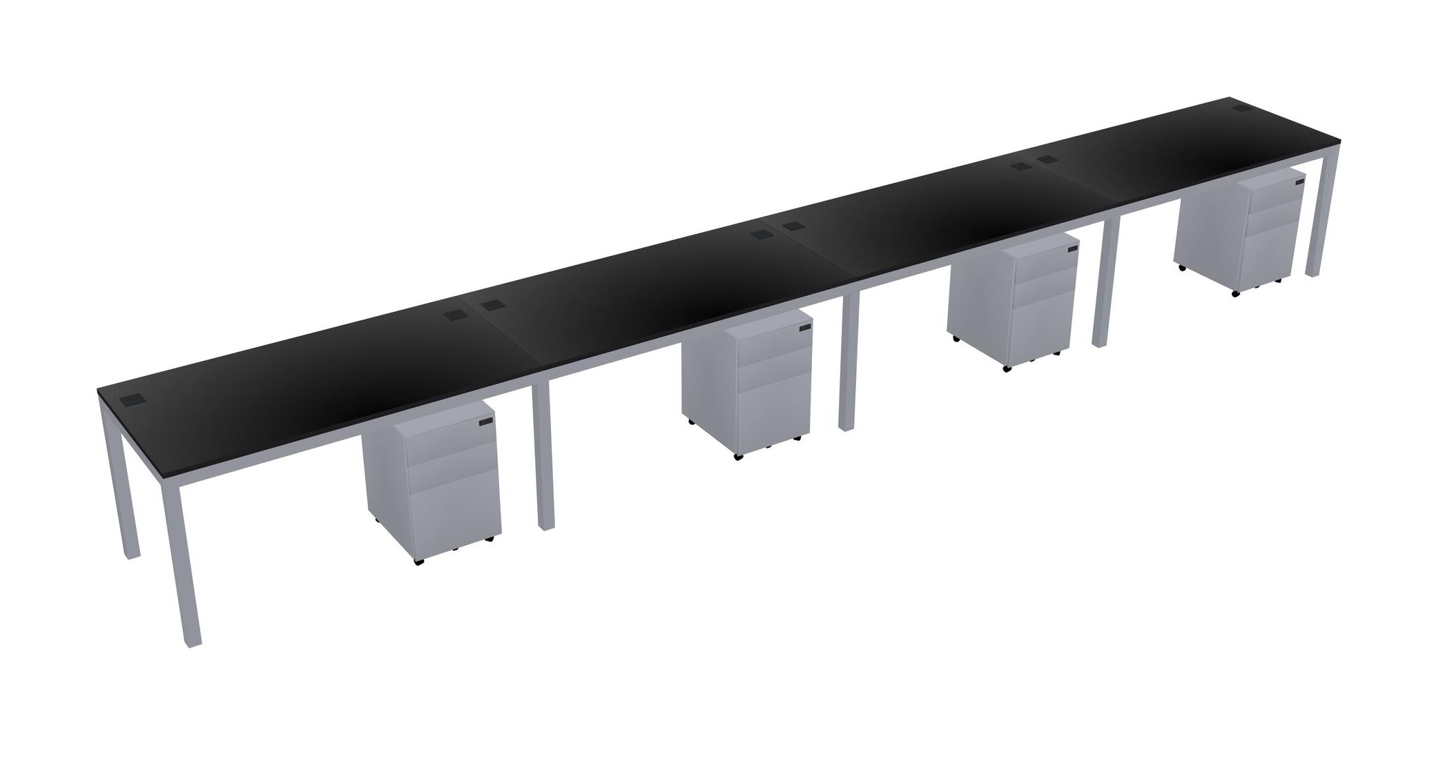 Black Rectangular Office Desk With Metal Mobile Drawers For 4 Persons