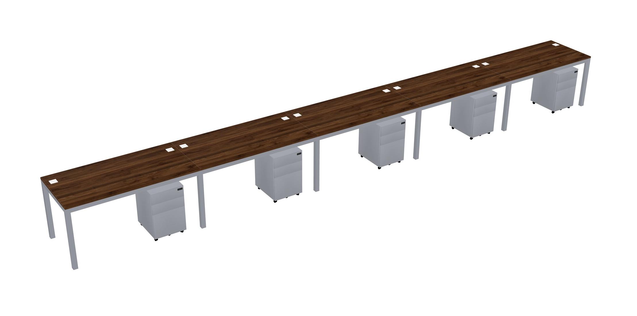Columbia Walnut Rectangular Office Desk With Metal Mobile Drawers For 5 Persons