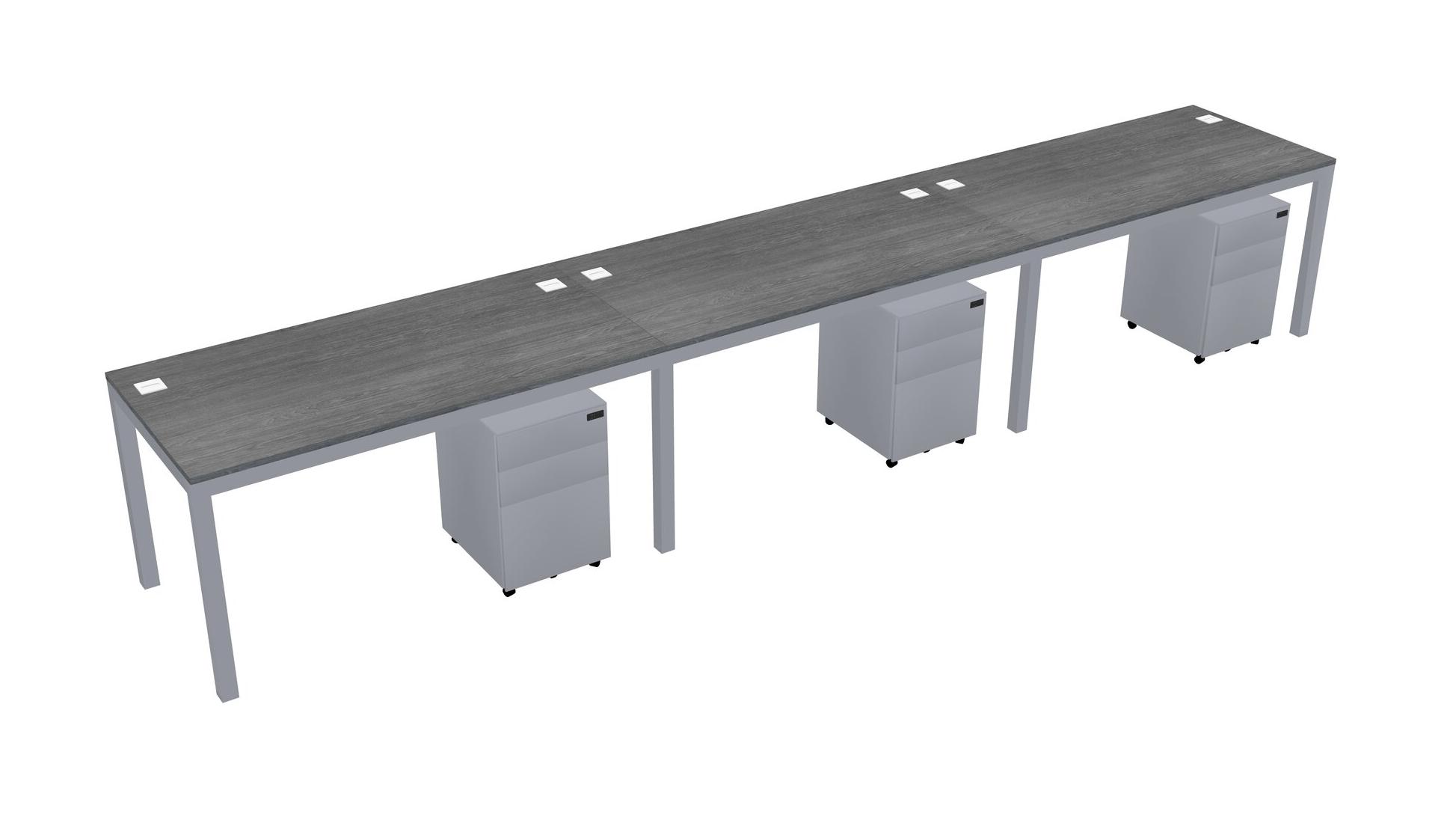 Grey Rectangular Office Desk With Metal Mobile Drawers For 3 Persons