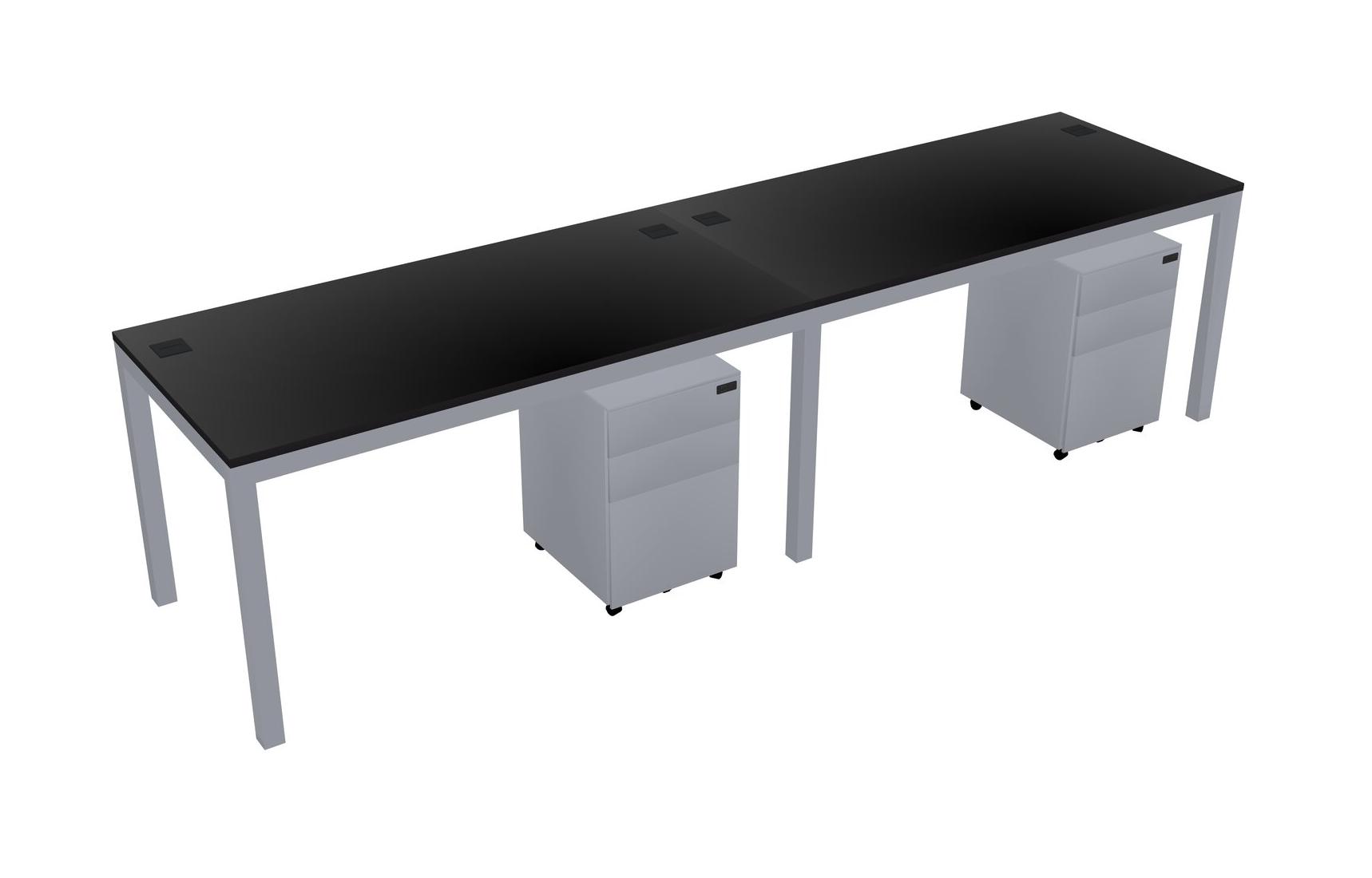 Black Rectangular Office Desk With Metal Mobile Drawers For 2 Persons