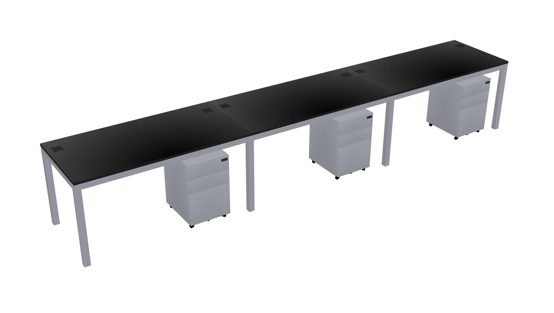 Black Rectangular Office Desk With Metal Mobile Drawers For 3 Persons
