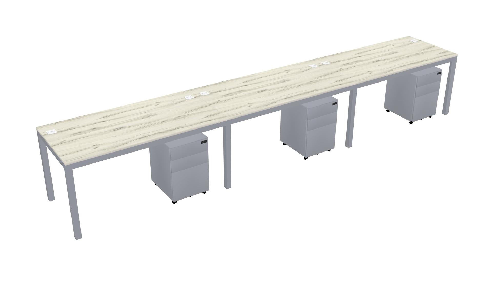 Heinne Holz Rectangular Office Desk With Metal Mobile Drawers For 3 Persons