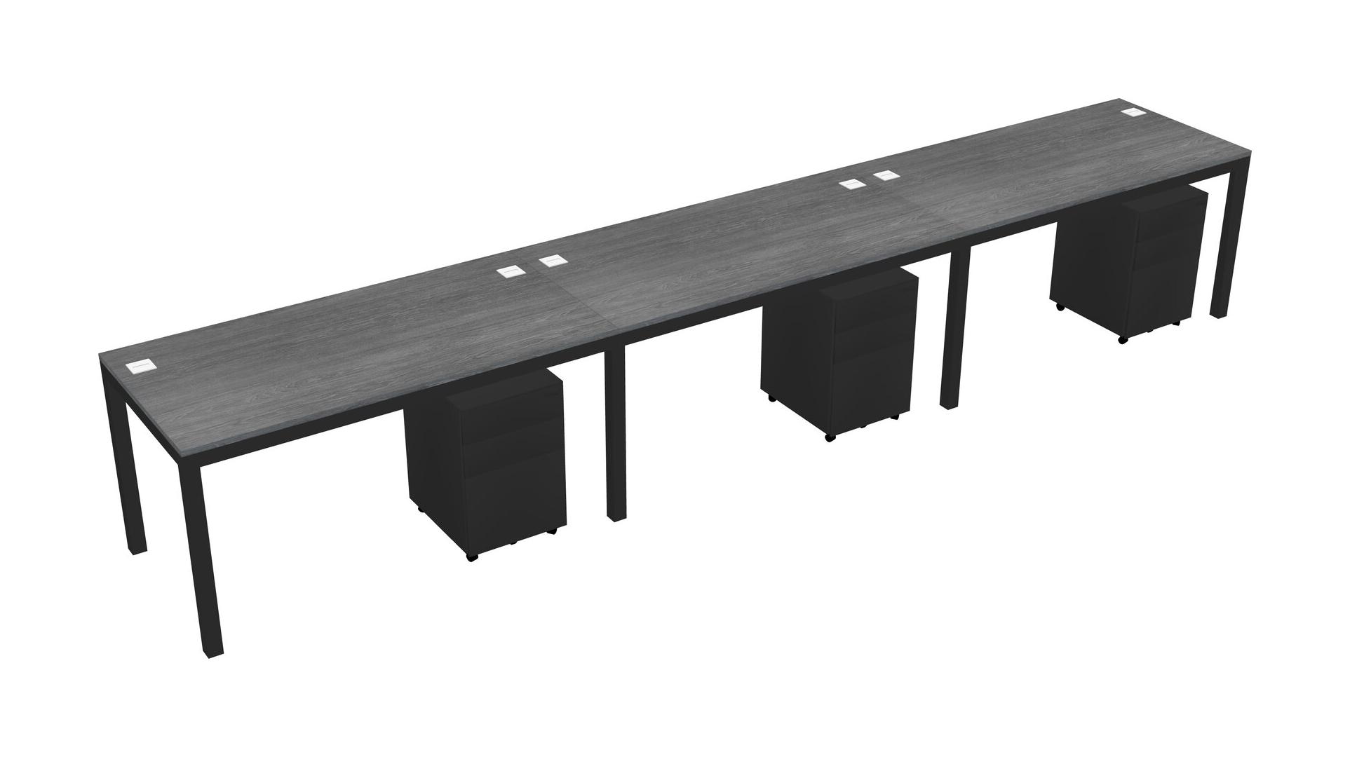 Grey Rectangular Office Desk With Metal Mobile Drawers For 3 Persons