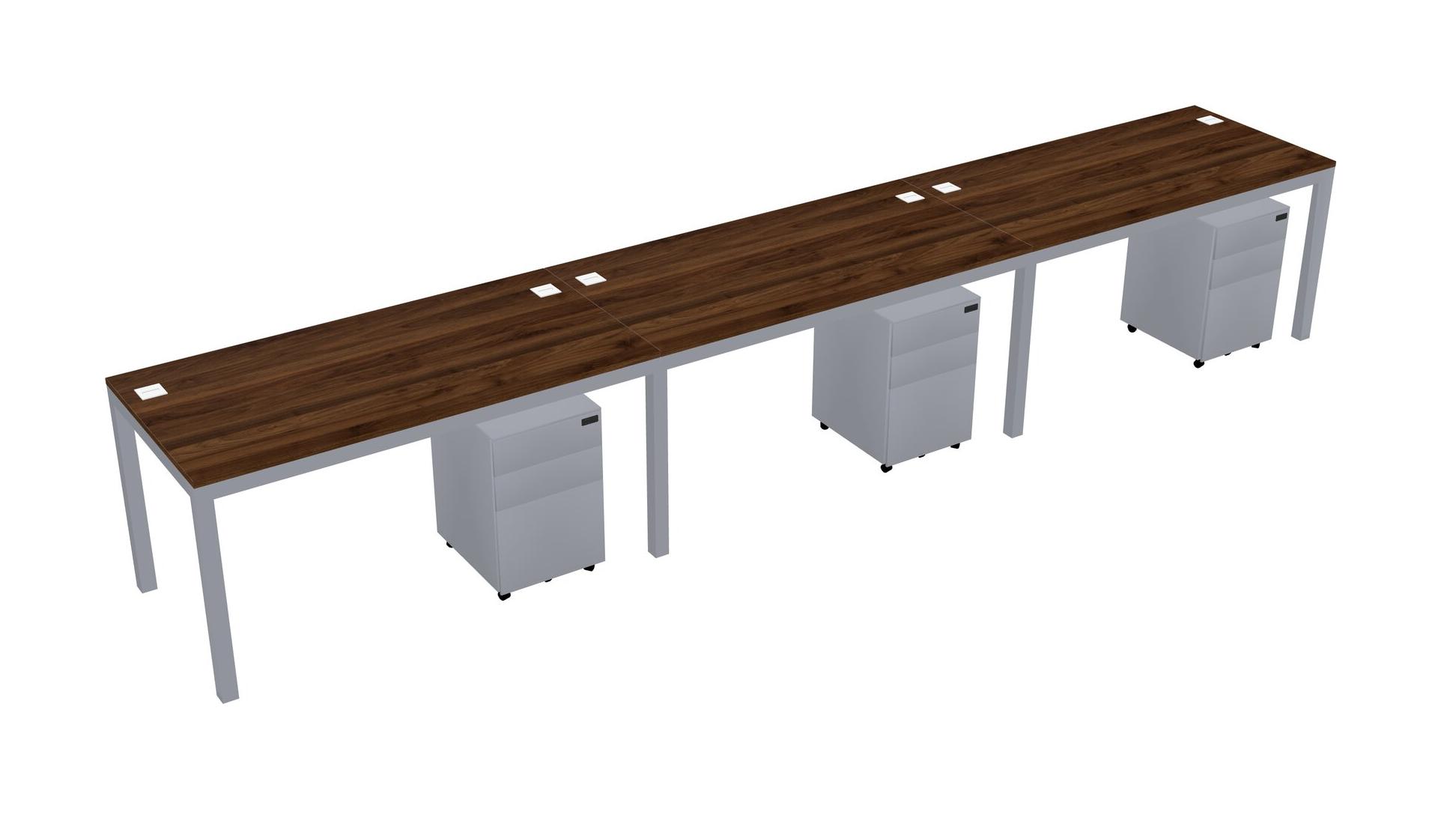 Columbia Walnut Rectangular Office Desk With Metal Mobile Drawers For 3 Persons