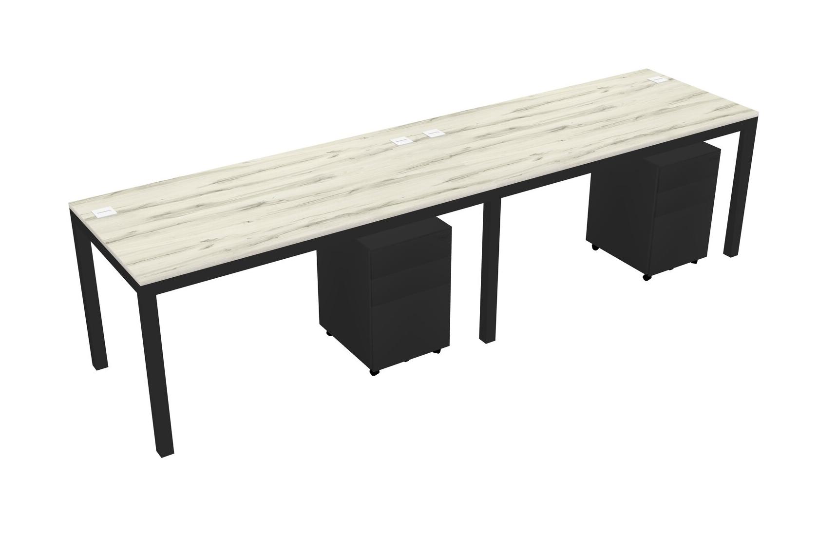 Heinne Holz Rectangular Office Desk With Metal Mobile Drawers For 2 Persons