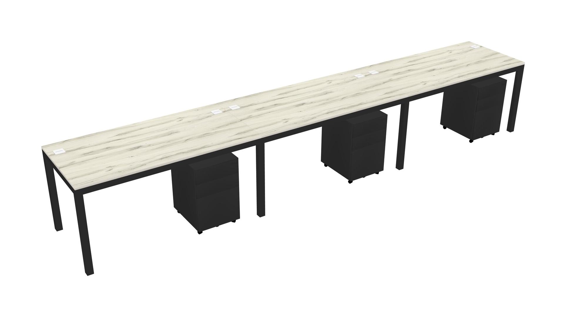 Heinne Holz Rectangular Office Desk With Metal Mobile Drawers For 3 Persons