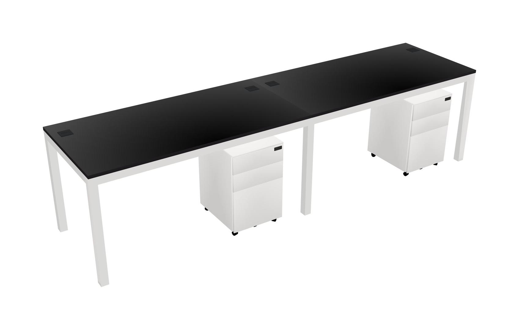Black Rectangular Office Desk With Metal Mobile Drawers For 2 Persons