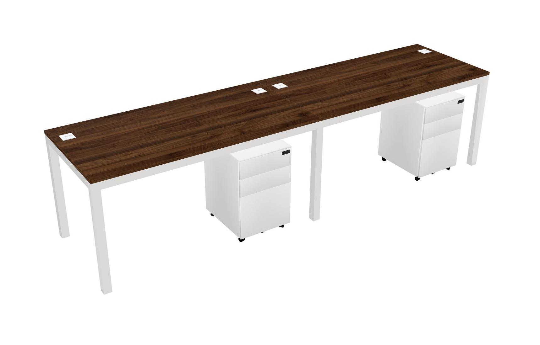 Columbia Walnut Rectangular Office Desk With Metal Mobile Drawers For 2 Persons