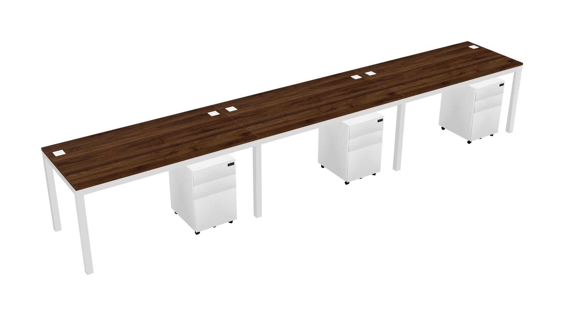 Columbia Walnut Rectangular Office Desk With Metal Mobile Drawers For 3 Persons