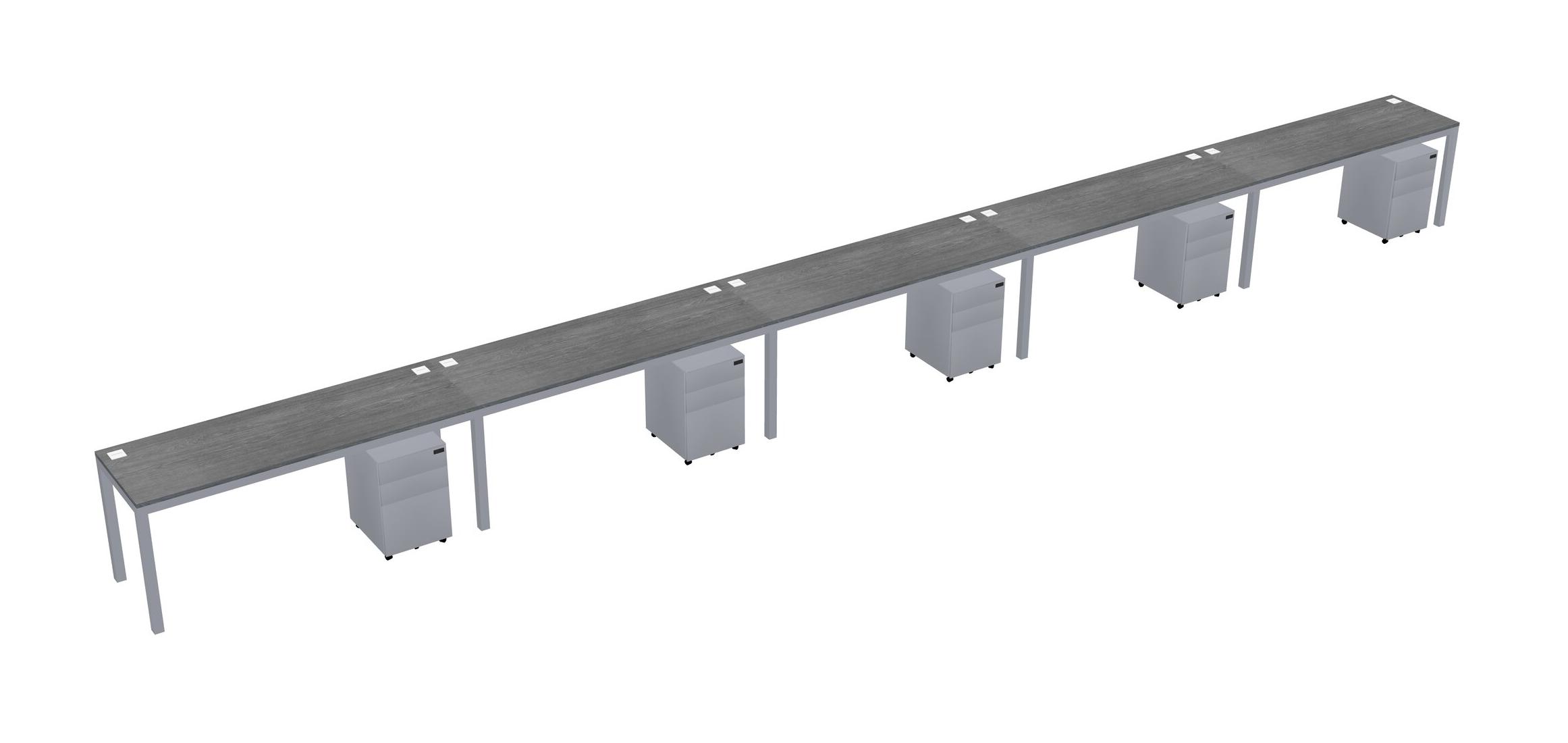 Grey Rectangular Office Desk With Metal Mobile Drawers For 5 Persons