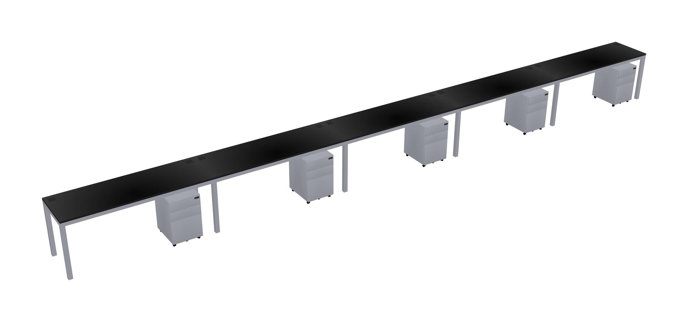 Black Rectangular Office Desk With Metal Mobile Drawers For 5 Persons