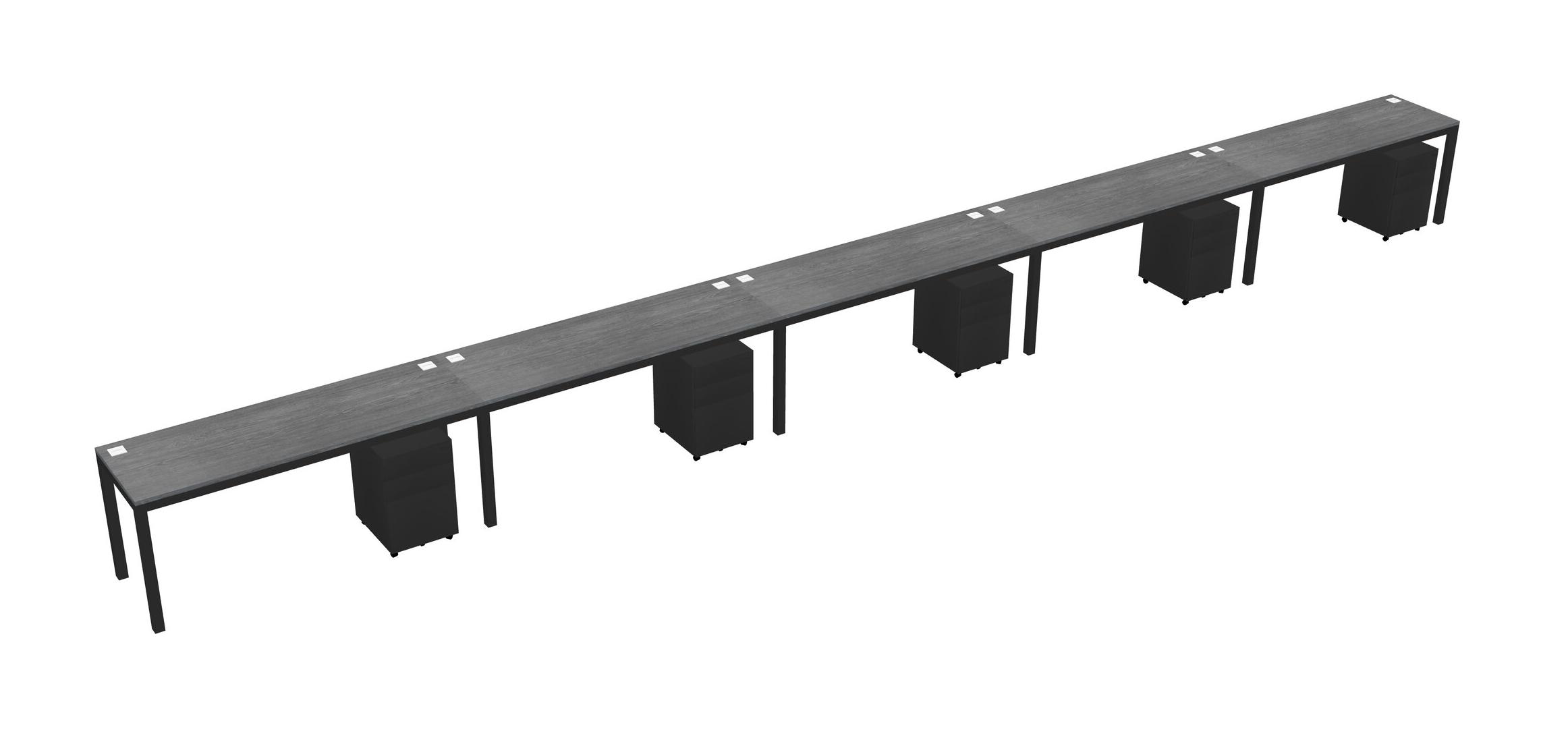 Grey Rectangular Office Desk With Metal Mobile Drawers For 5 Persons