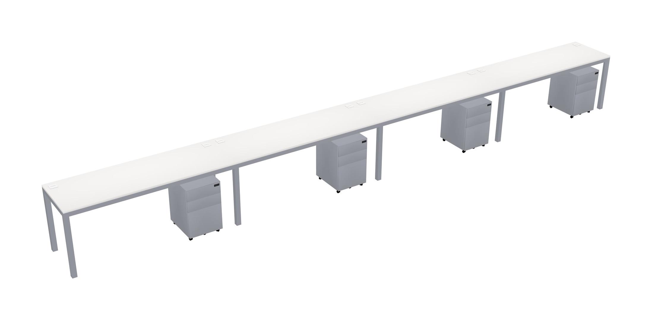 White Rectangular Office Desk With Metal Mobile Drawers For 4 Persons