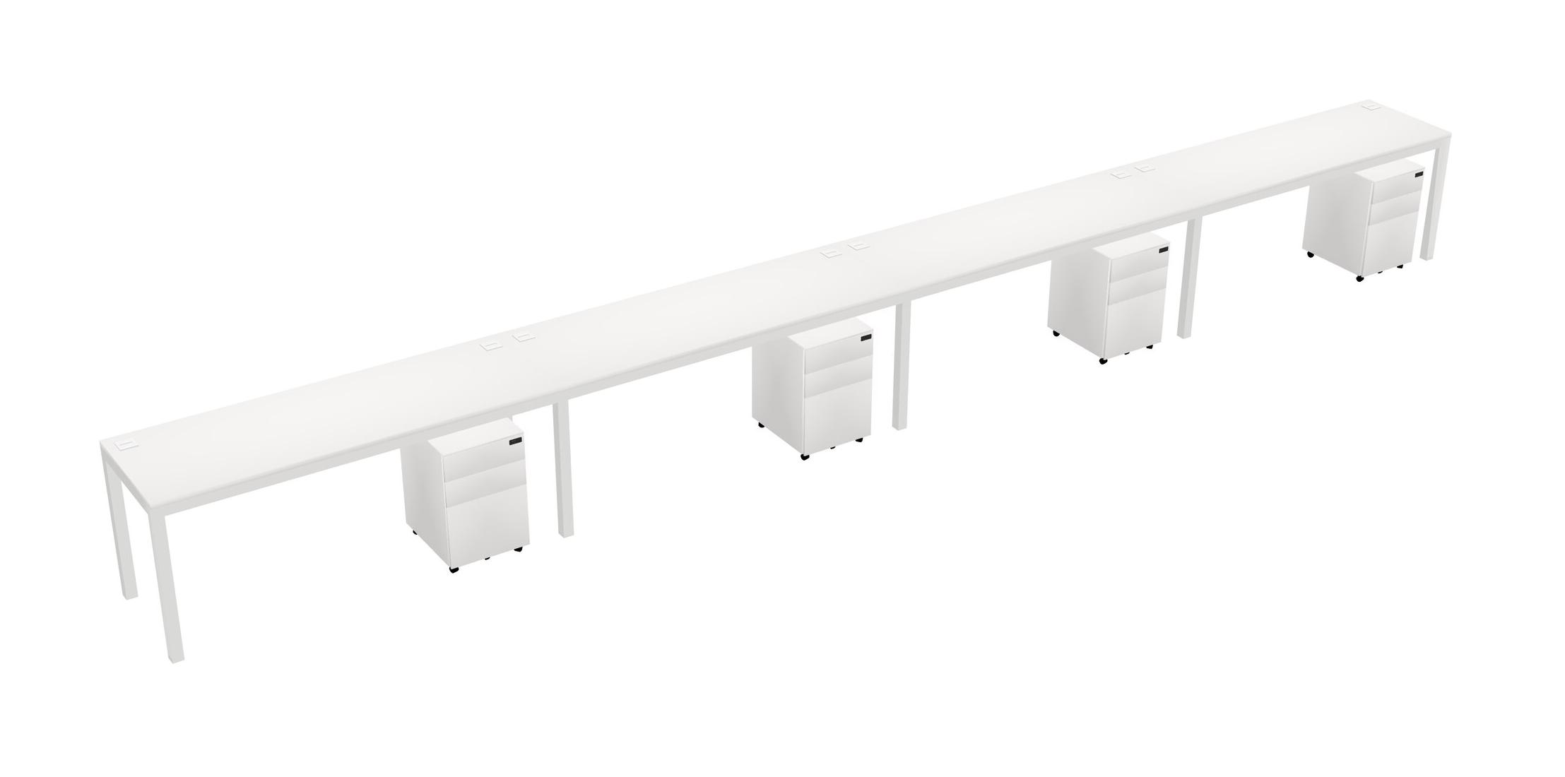 White Rectangular Office Desk With Metal Mobile Drawers For 4 Persons