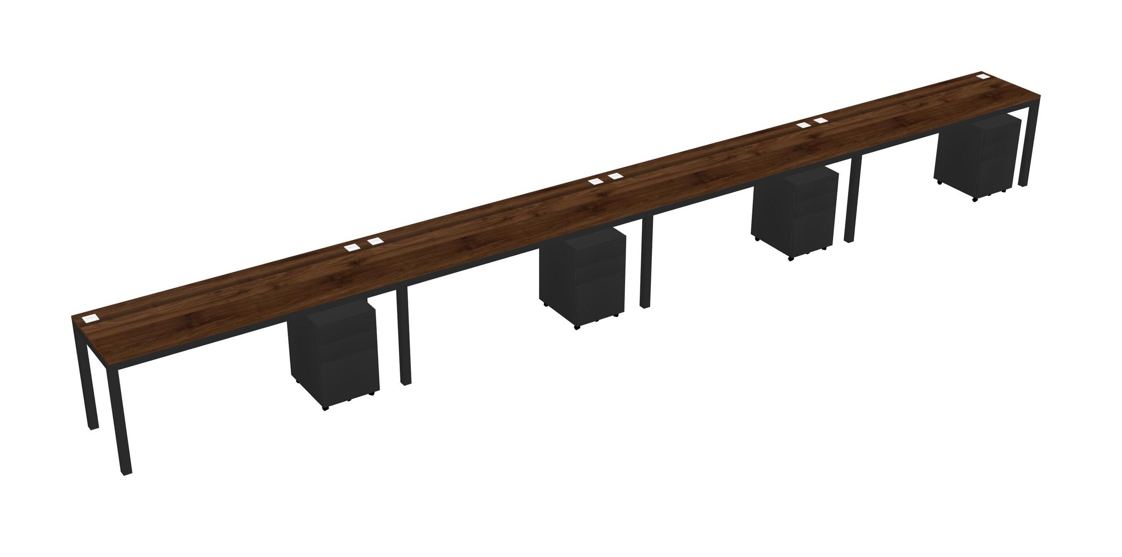 Columbia Walnut Rectangular Office Desk With Metal Mobile Drawers For 4 Persons
