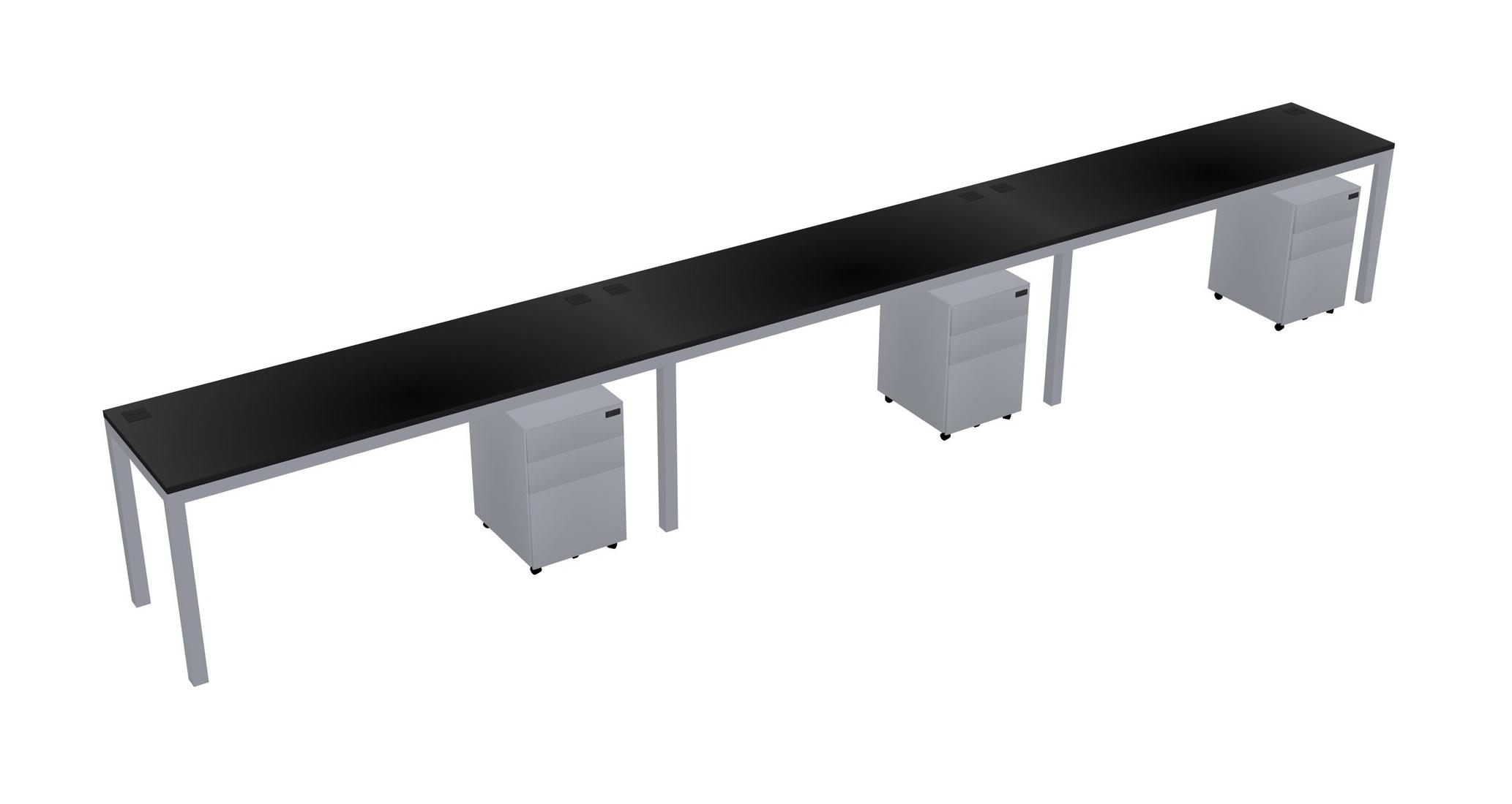 Black Rectangular Office Desk With Metal Mobile Drawers For 3 Persons