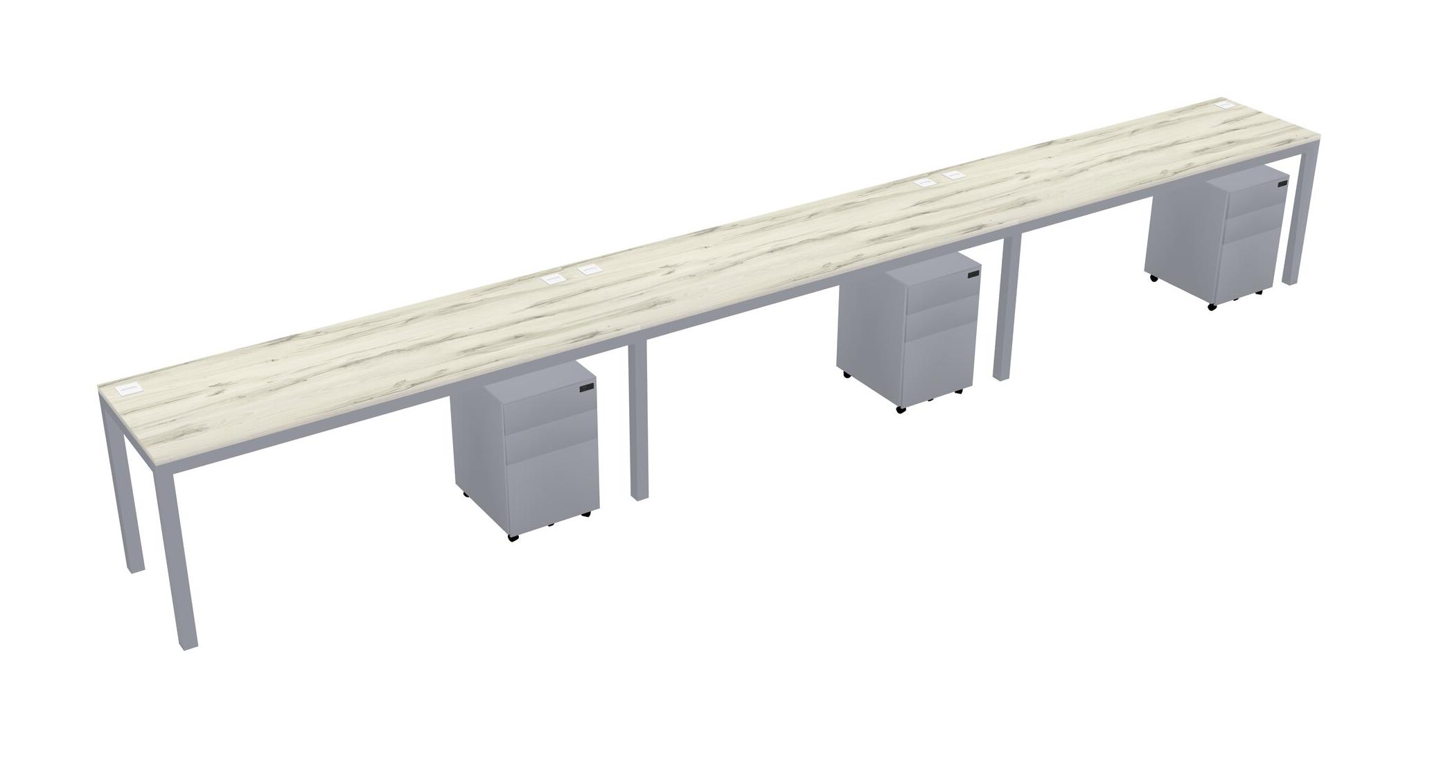 Heinne Holz Rectangular Office Desk With Metal Mobile Drawers For 3 Persons