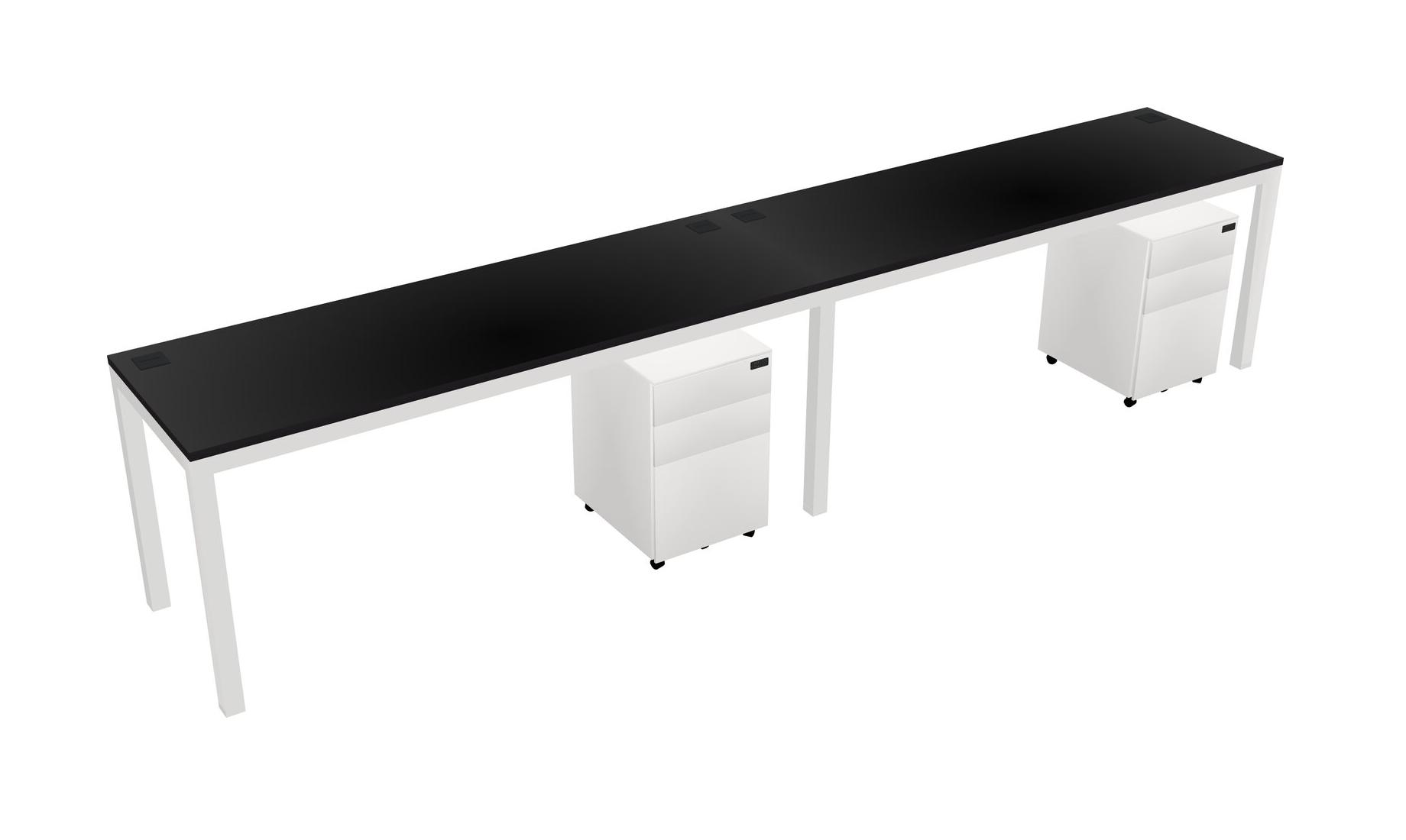 Black Rectangular Office Desk With Metal Mobile Drawers For 2 Persons
