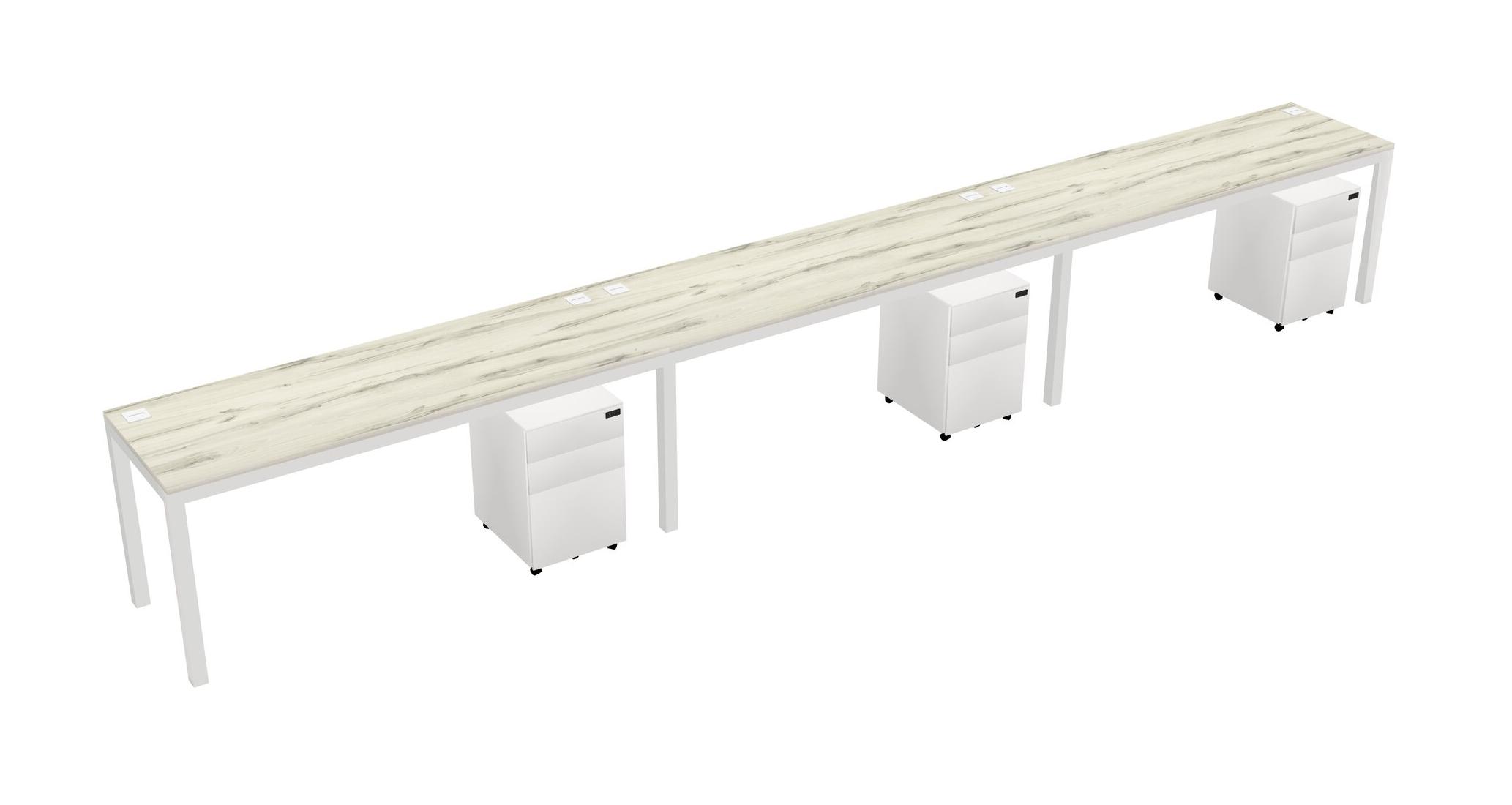 Heinne Holz Rectangular Office Desk With Metal Mobile Drawers For 3 Persons
