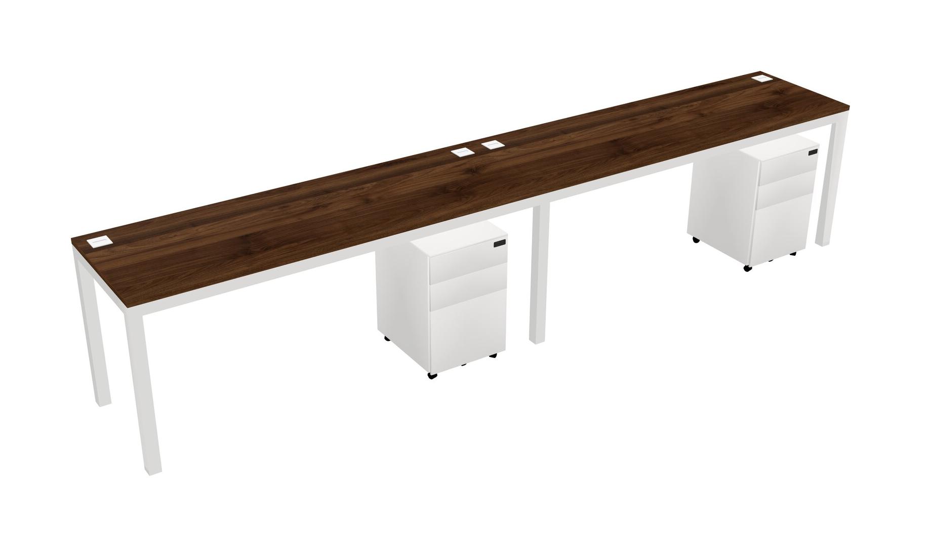 Columbia Walnut Rectangular Office Desk With Metal Mobile Drawers For 2 Persons