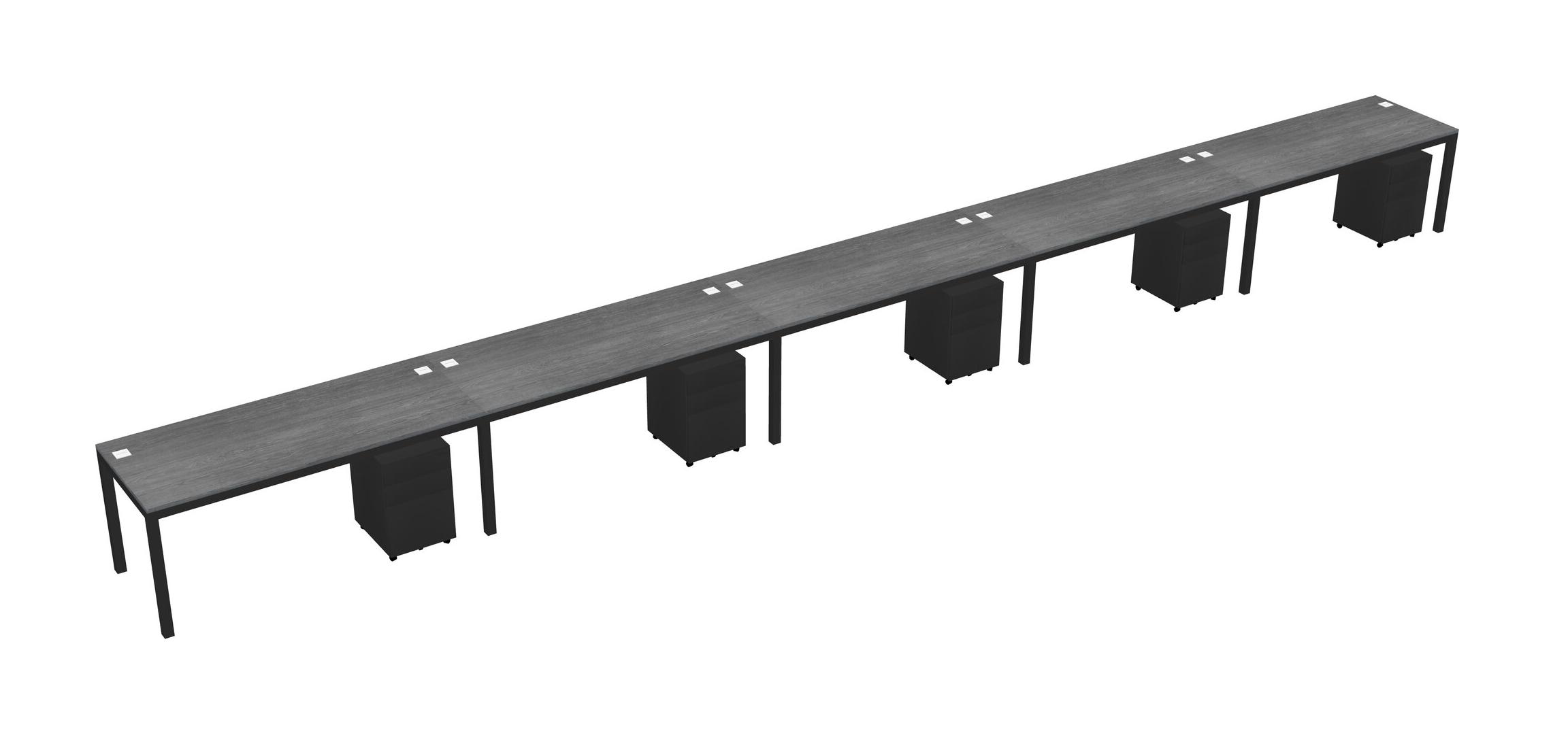 Grey Rectangular Office Desk With Metal Mobile Drawers For 5 Persons