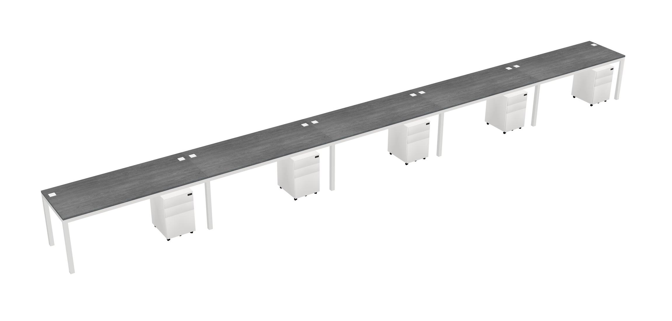 Grey Rectangular Office Desk With Metal Mobile Drawers For 5 Persons