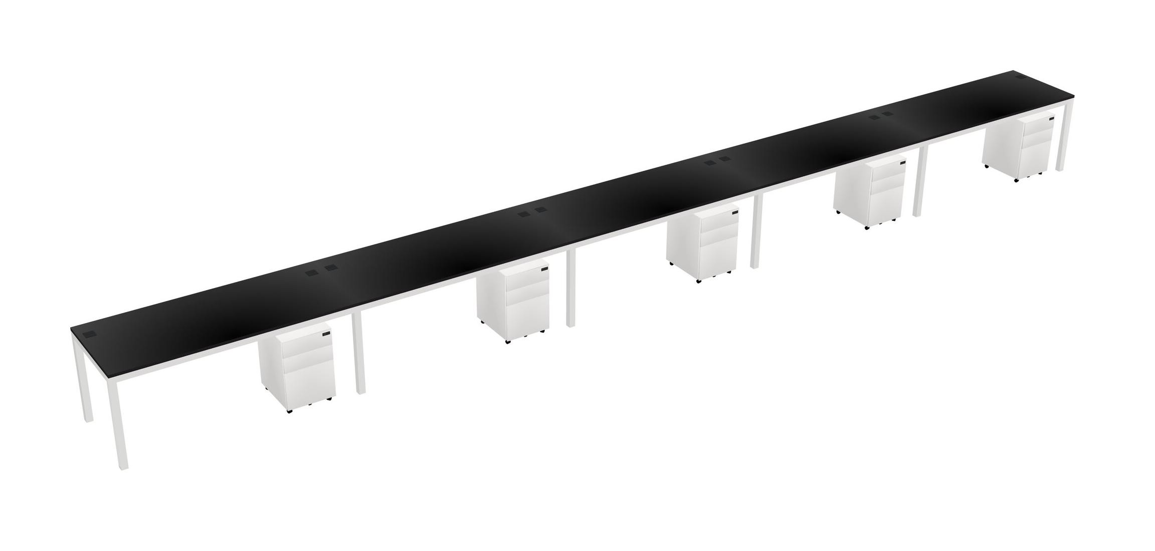 Black Rectangular Office Desk With Metal Mobile Drawers For 5 Persons