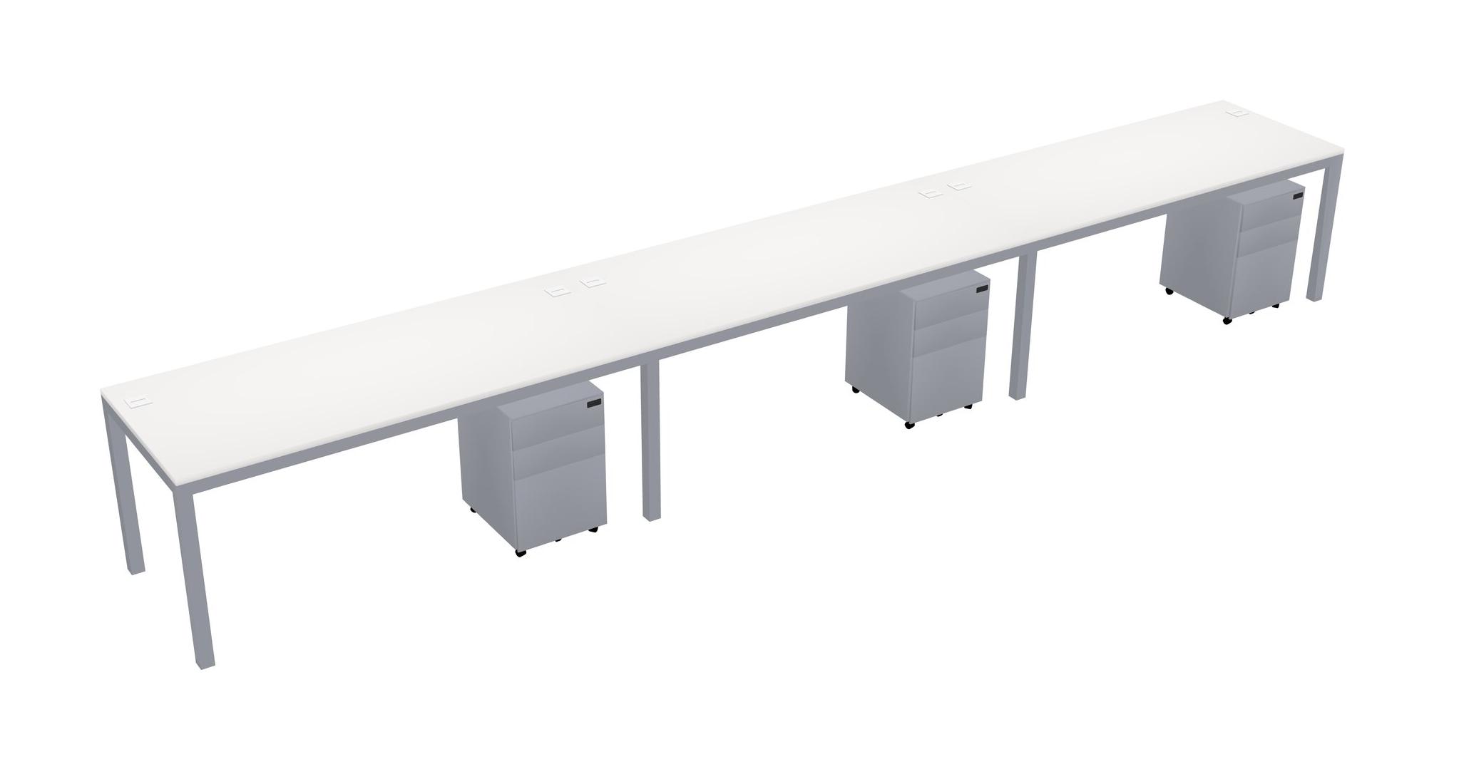 White Rectangular Office Desk With Metal Mobile Drawers For 3 Persons