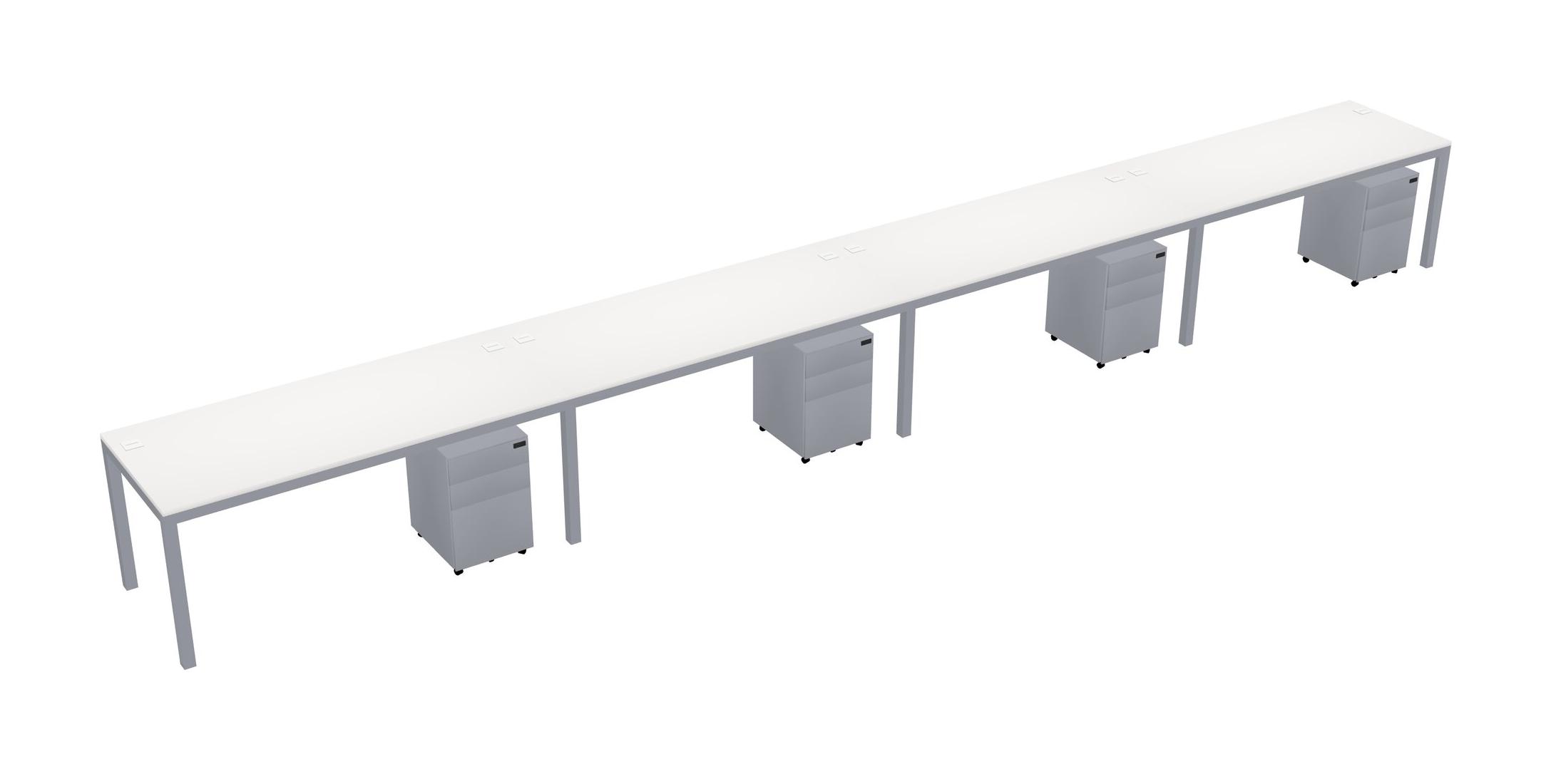 White Rectangular Office Desk With Metal Mobile Drawers For 4 Persons