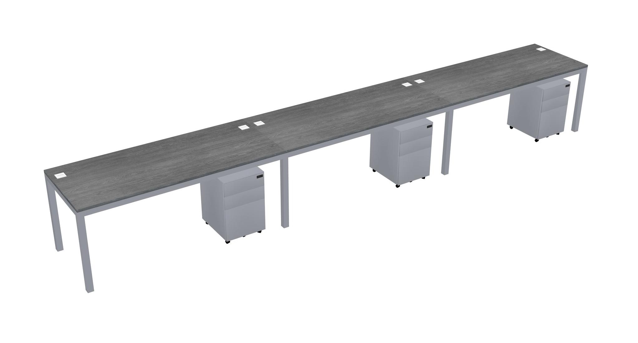 Grey Rectangular Office Desk With Metal Mobile Drawers For 3 Persons