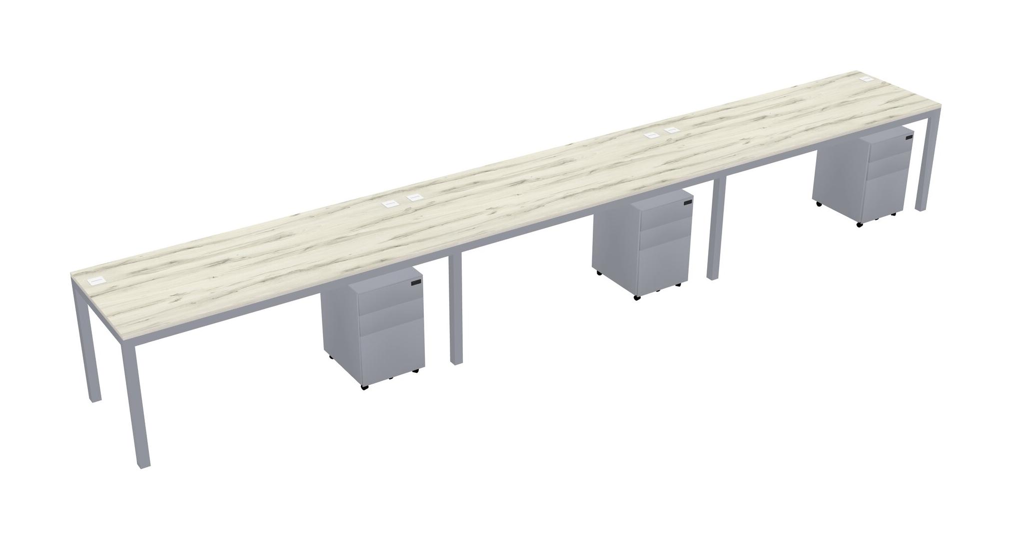 Heinne Holz Rectangular Office Desk With Metal Mobile Drawers For 3 Persons