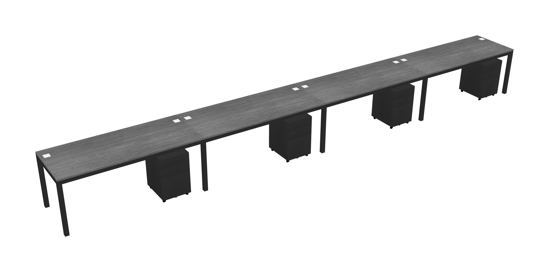 Grey Rectangular Office Desk With Metal Mobile Drawers For 4 Persons