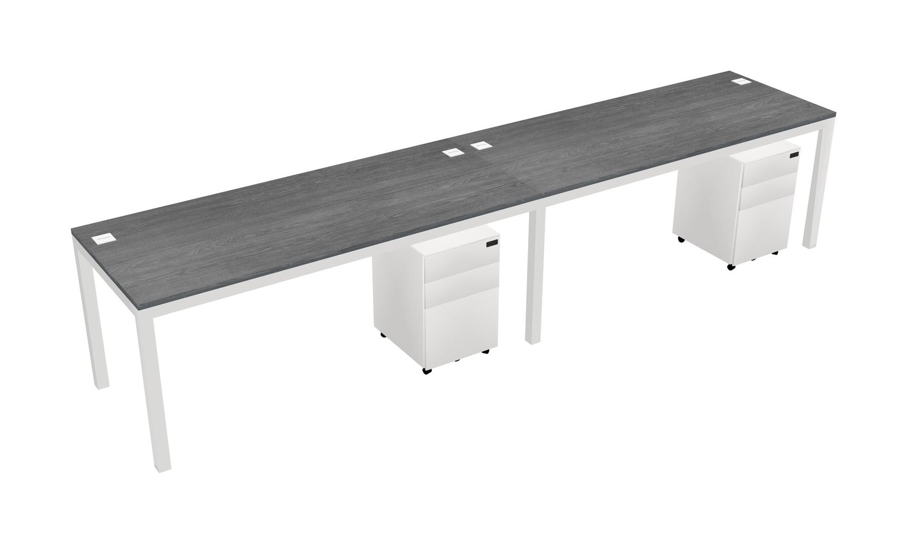 Grey Rectangular Office Desk With Metal Mobile Drawers For 2 Persons