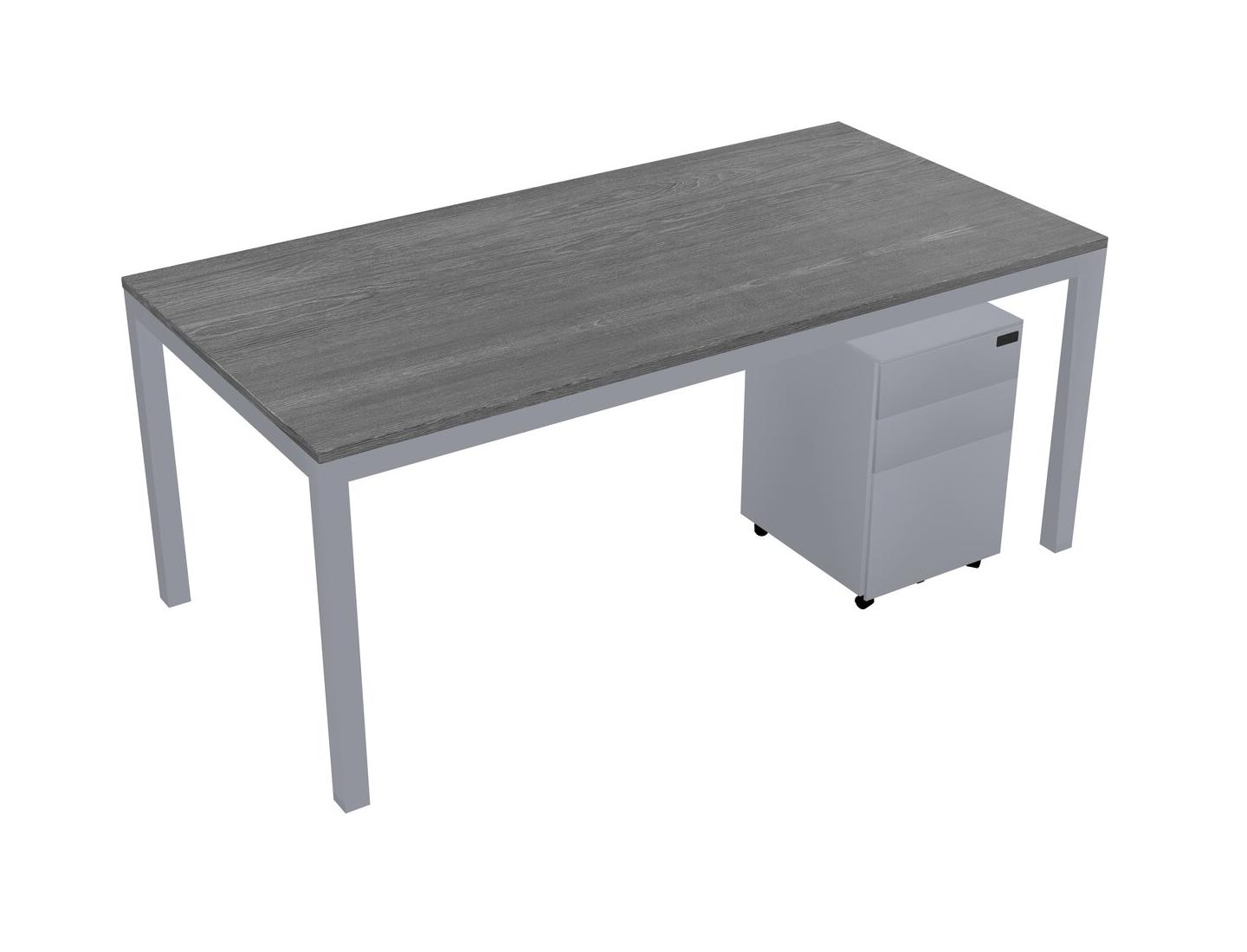 Grey Rectangular Office Desk With Metal Mobile Drawers For 1 Persons