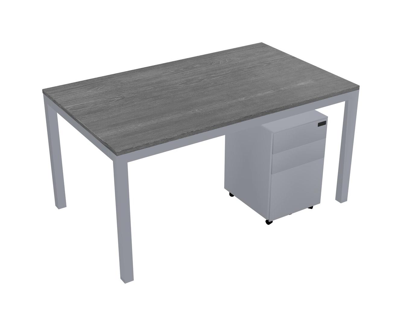 Grey Rectangular Office Desk With Metal Mobile Drawers For 1 Persons
