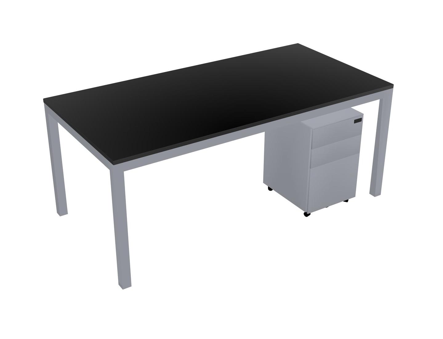 Black Rectangular Office Desk With Metal Mobile Drawers For 1 Persons