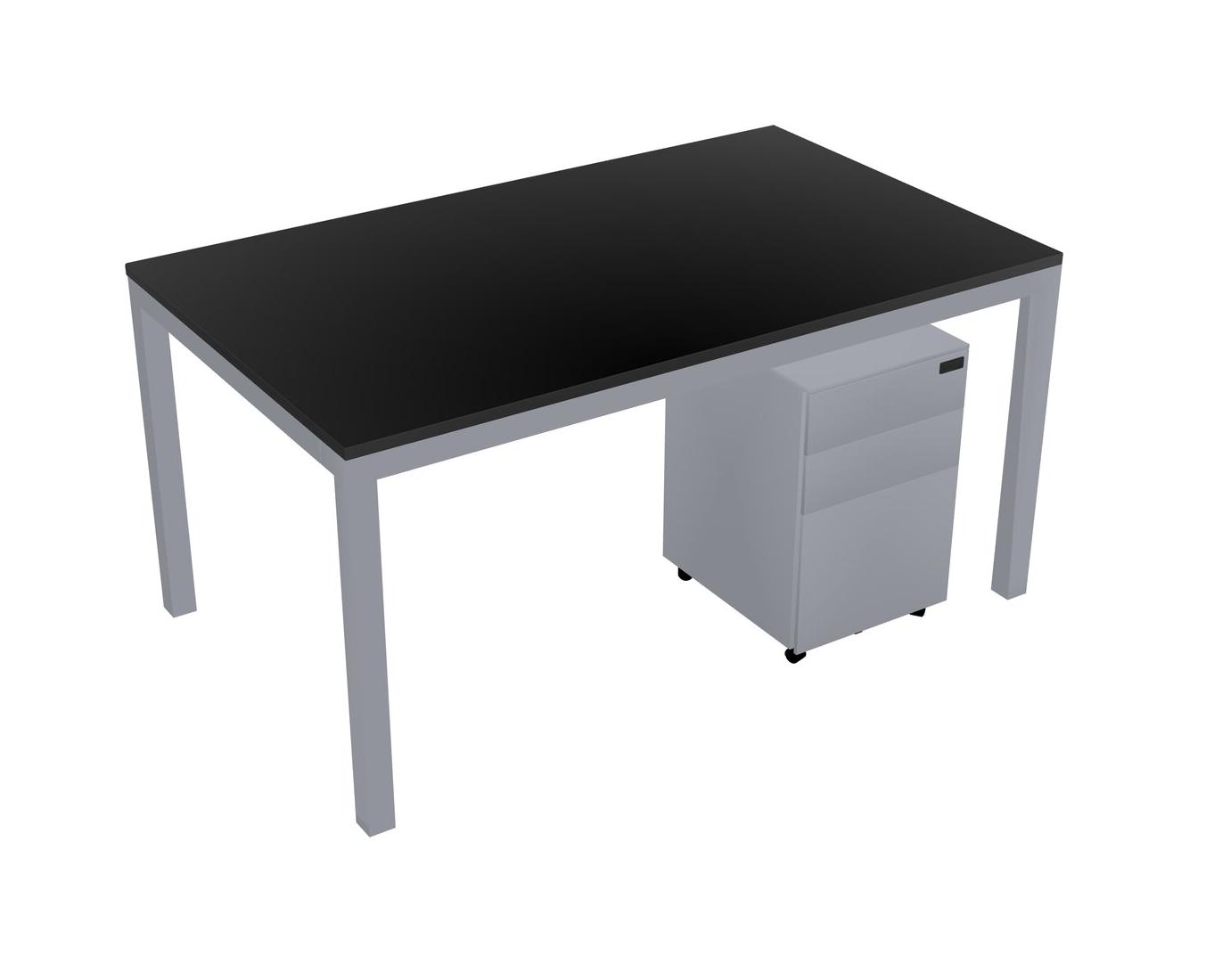 Black Rectangular Office Desk With Metal Mobile Drawers For 1 Persons