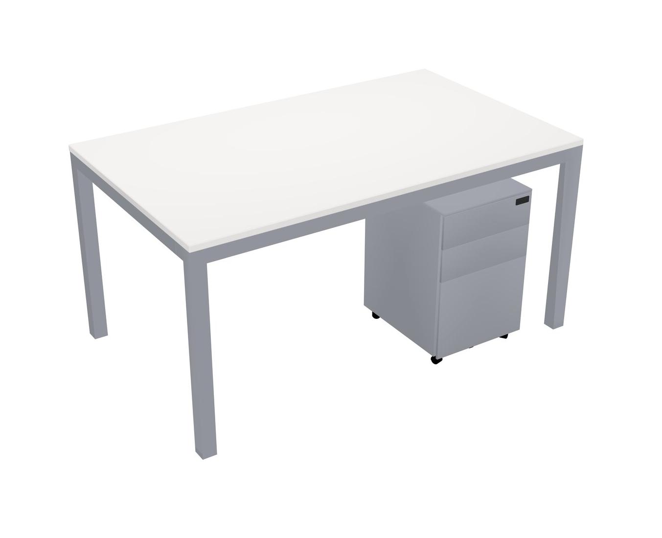 White Rectangular Office Desk With Metal Mobile Drawers For 1 Persons