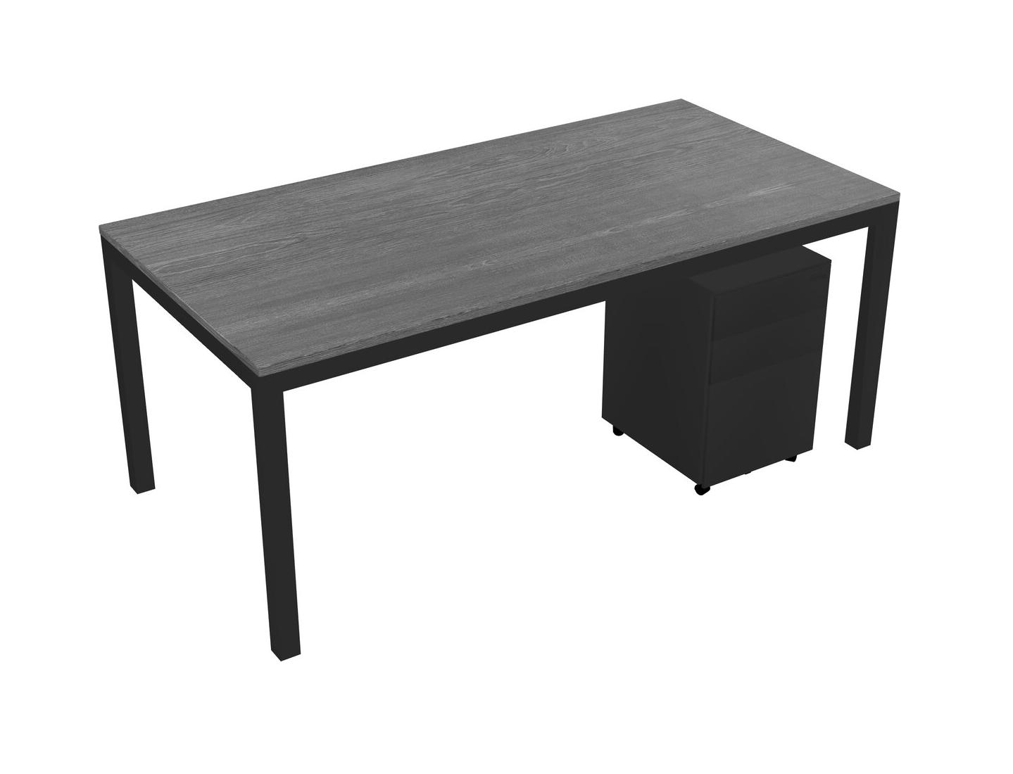 Grey Rectangular Office Desk With Metal Mobile Drawers For 1 Persons