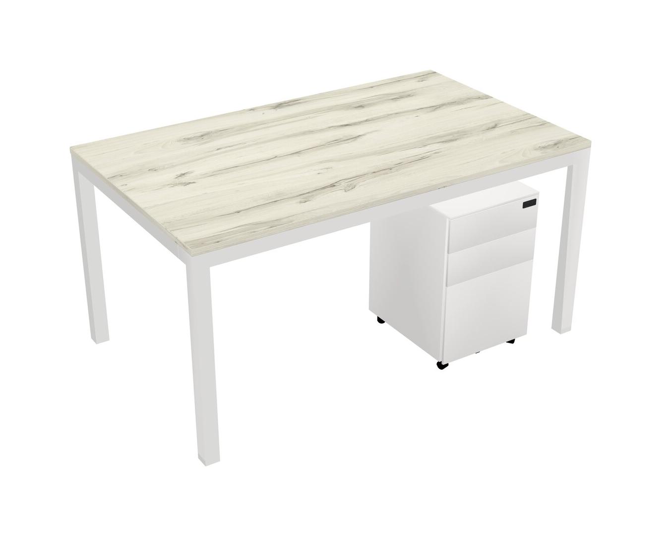 Heinne Holz Rectangular Office Desk With Metal Mobile Drawers For 1 Persons