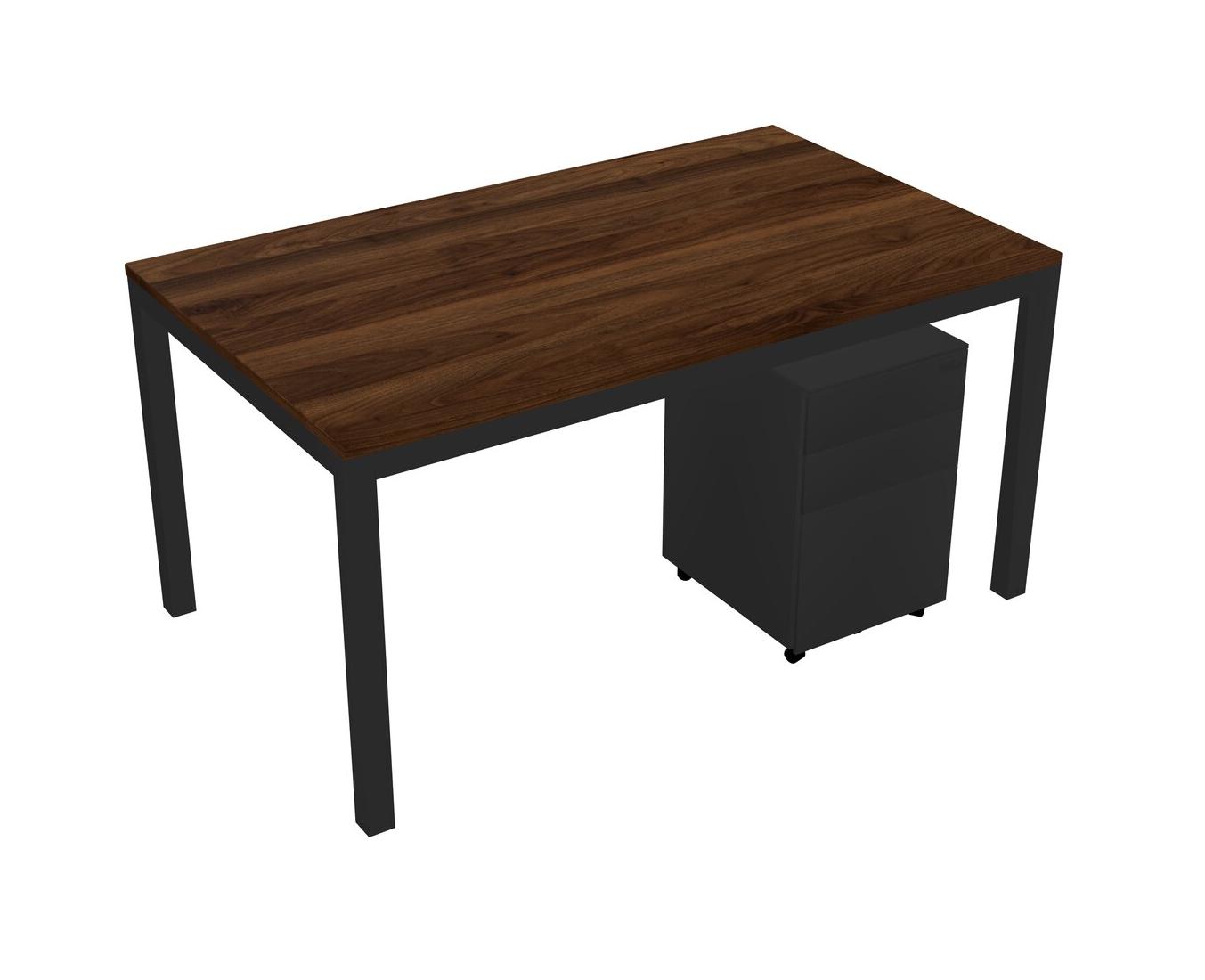 Columbia Walnut Rectangular Office Desk With Metal Mobile Drawers For 1 Persons