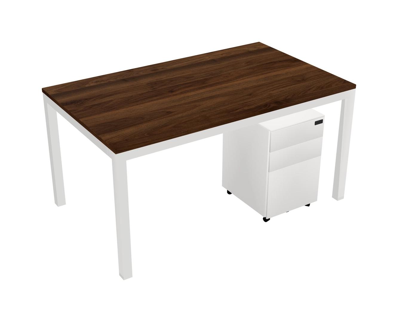 Columbia Walnut Rectangular Office Desk With Metal Mobile Drawers For 1 Persons