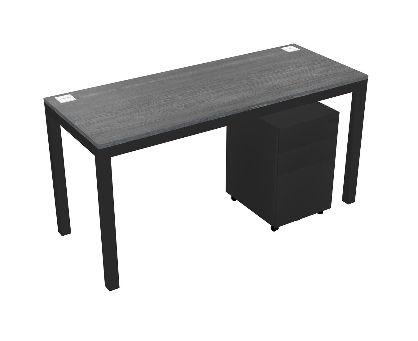 Grey Rectangular Office Desk With Metal Mobile Drawers For 1 Persons