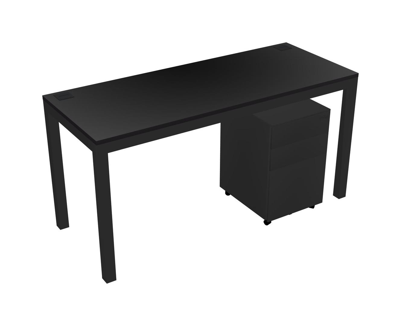 Black Rectangular Office Desk With Metal Mobile Drawers For 1 Persons